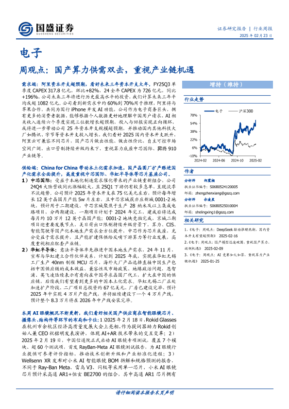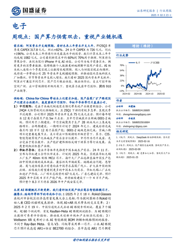 国产算力 智能眼镜 电子行业 芯片制造 资本开支