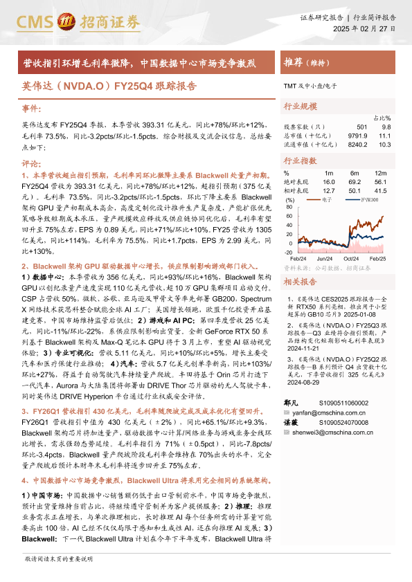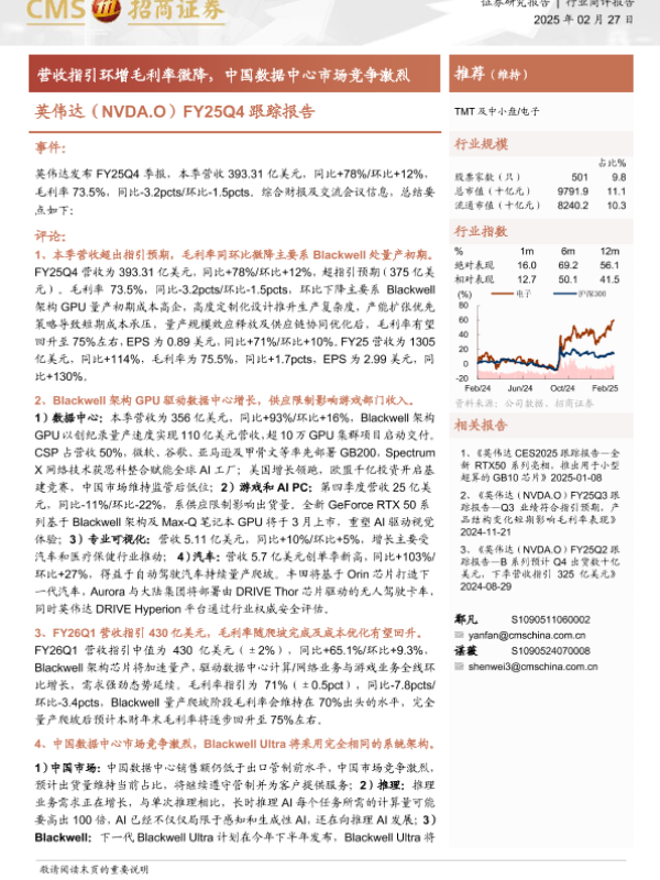 【海通证券】【20250227】英伟达 FY25Q4跟踪报告-营收指引环增毛利率微降,中国数据中心市场竞争激烈-14页