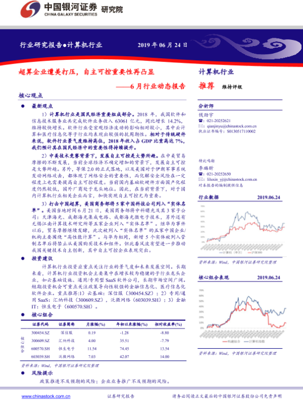 【银河证券】【20190624】超算企业遭美打压,自主可控重要性再凸显——6月行业动态报告-28页