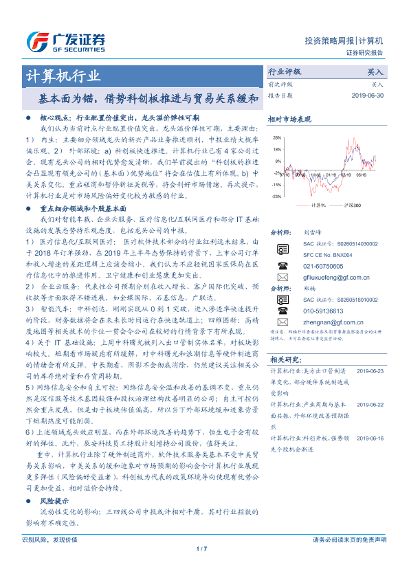 【广发证券】【20190630】计算机行业:基本面为锚,借势科创板推进与贸易关系缓和-7页