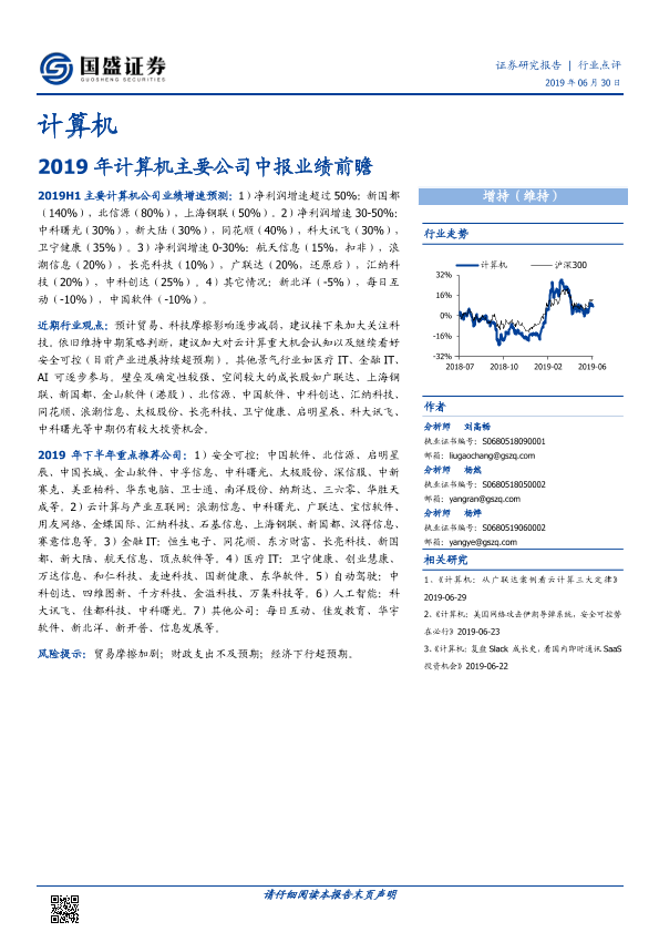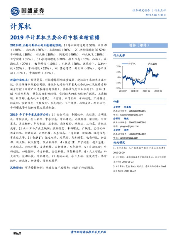 【国盛证券】【20190630】2019年计算机主要公司中报业绩前瞻-5页