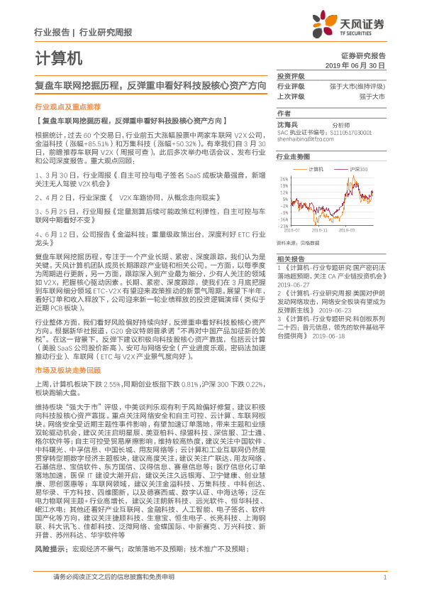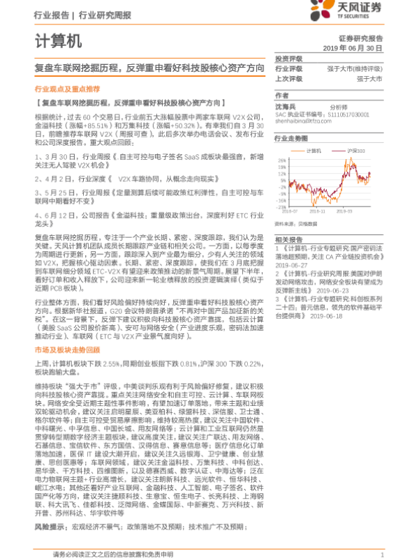 【天风证券】【20190630】20190630-天风证券-计算机行业研究周报:复盘车联网挖掘历程,反弹重申看好科技股核心资产方向-13页