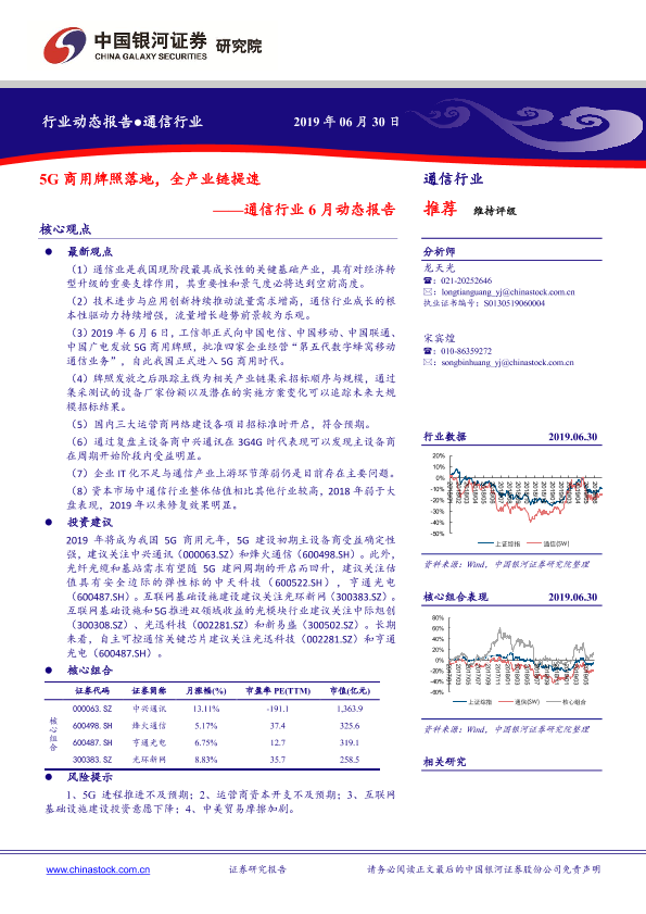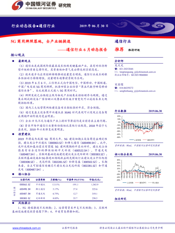 【银河证券】【20190630】20190630-中国银河-通信行业6月动态报告:5G商用牌照落地,全产业链提速-21页