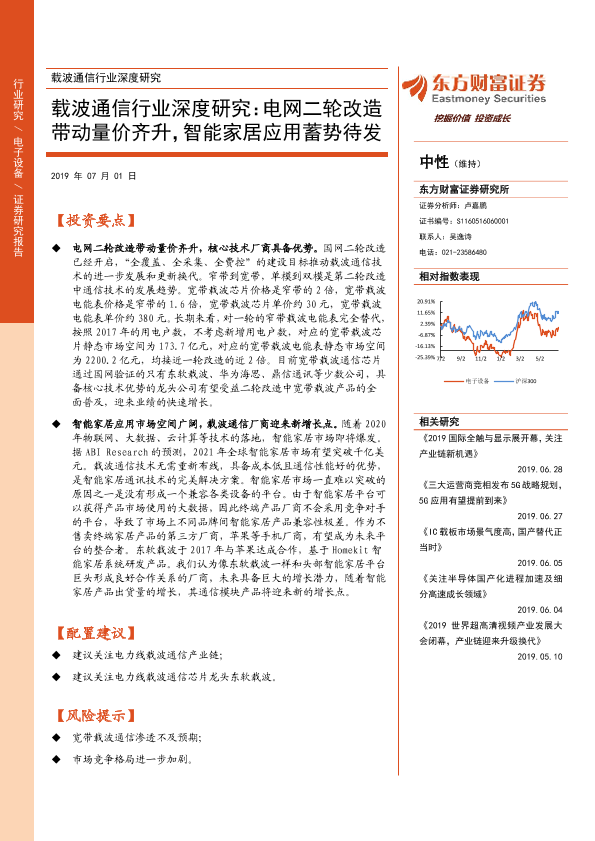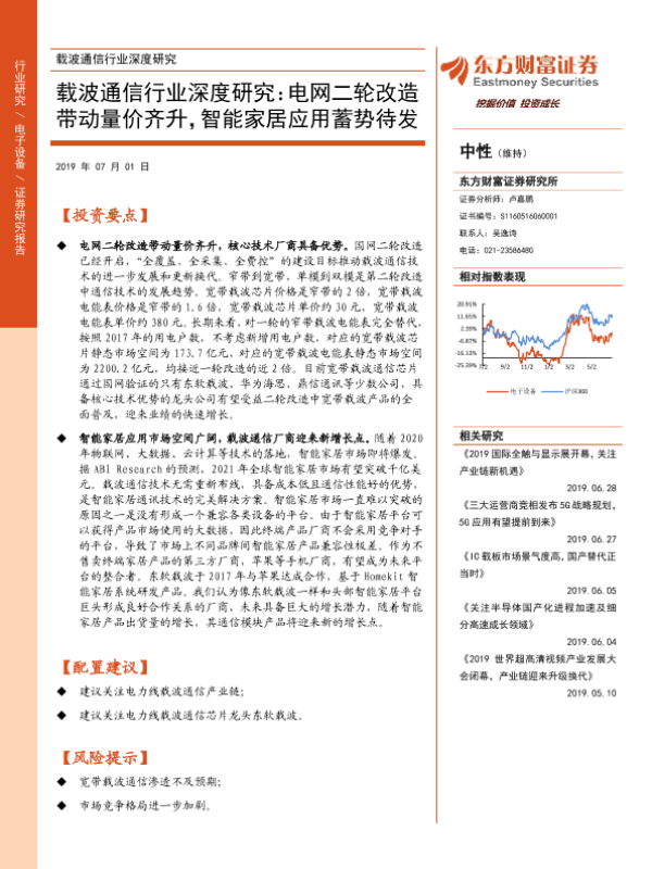 【东方财富证券】【20190701】载波通信行业深度研究:电网二轮改造带动量价齐升,智能家居应用蓄势待发-23页