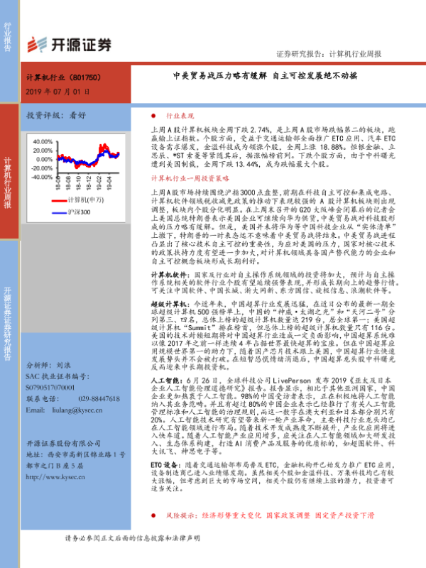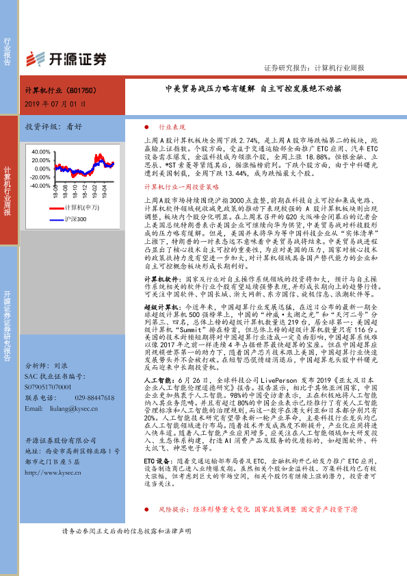 【开源证券】【20190701】20190701-开源证券-计算机行业周报:中美贸易战压力略有缓解 自主可控发展绝不动摇-11页