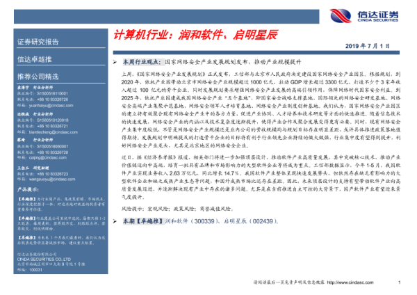 【信达证券】【20190701】计算机行业:润和软件、启明星辰-5页