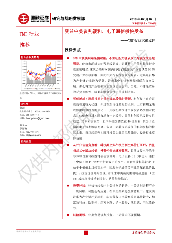 【国融证券】【20190702】TMT行业大涨点评:受益中美谈判缓和,电子通信板块受益-7页