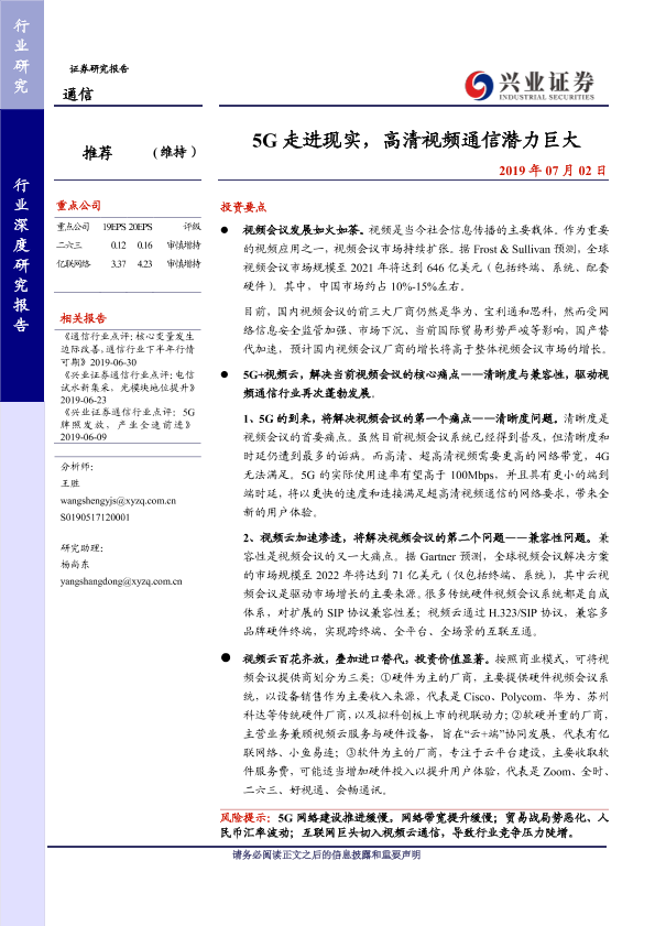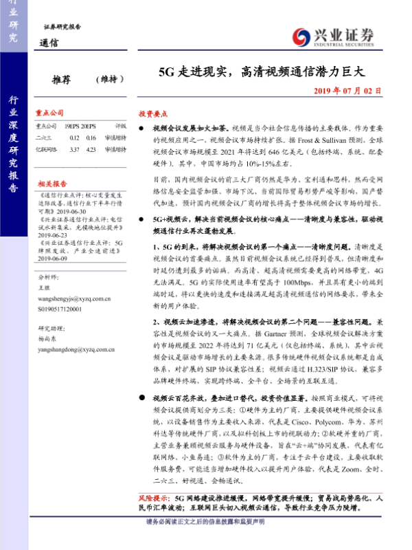 【兴业证券】【20190702】5G走进现实,高清视频通信潜力巨大-25页