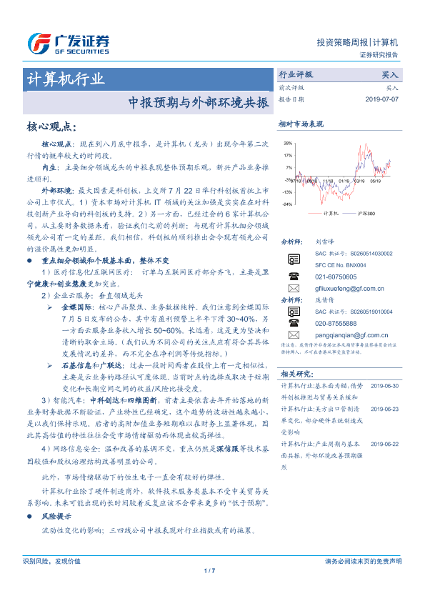 【广发证券】【20190707】计算机行业:中报预期与外部环境共振-7页
