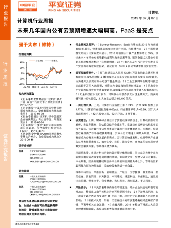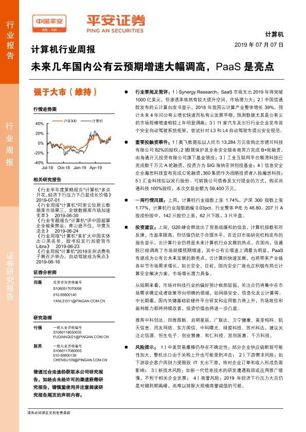 【平安证券】【20190707】计算机行业周报:未来几年国内公有云预期增速大幅调高,PaaS是亮点-5页