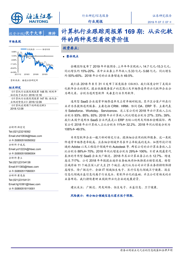 【海通证券】【20190707】计算机行业跟踪周报第169期:从云化软件的两种类型看投资价值-6页