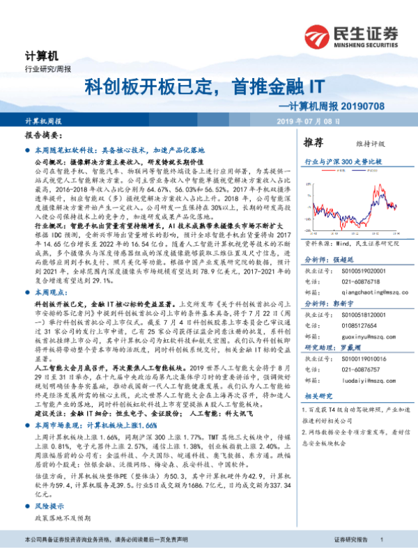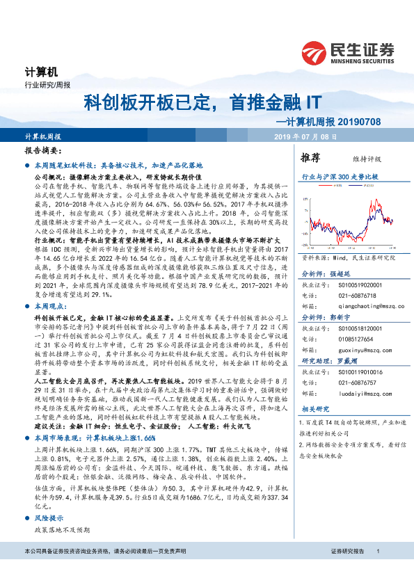 【民生证券】【20190708】20190708-民生证券-计算机周报:科创板开板已定,首推金融IT-12页