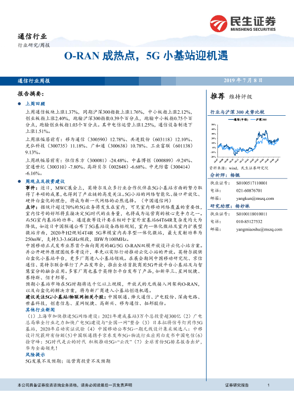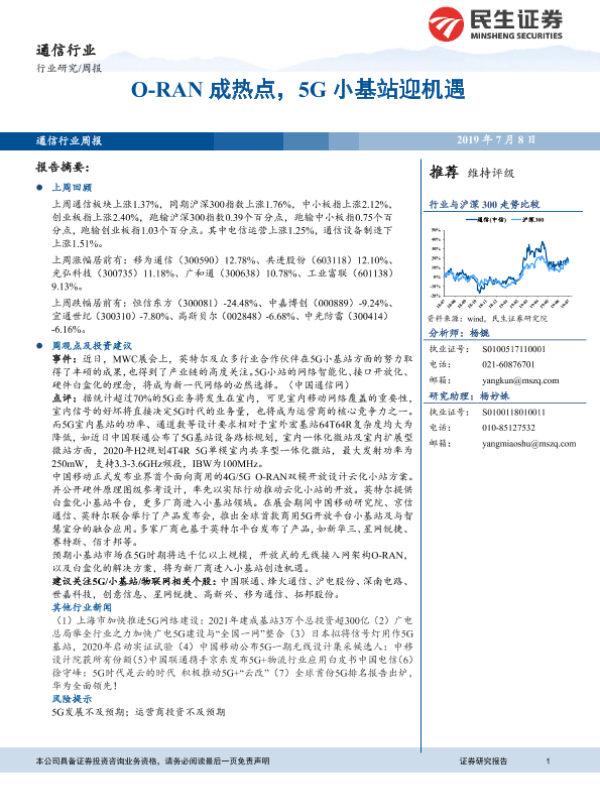 【民生证券】【20190708】20190708-民生证券-通信行业周报:O-RAN成热点,5G小基站迎机遇-12页