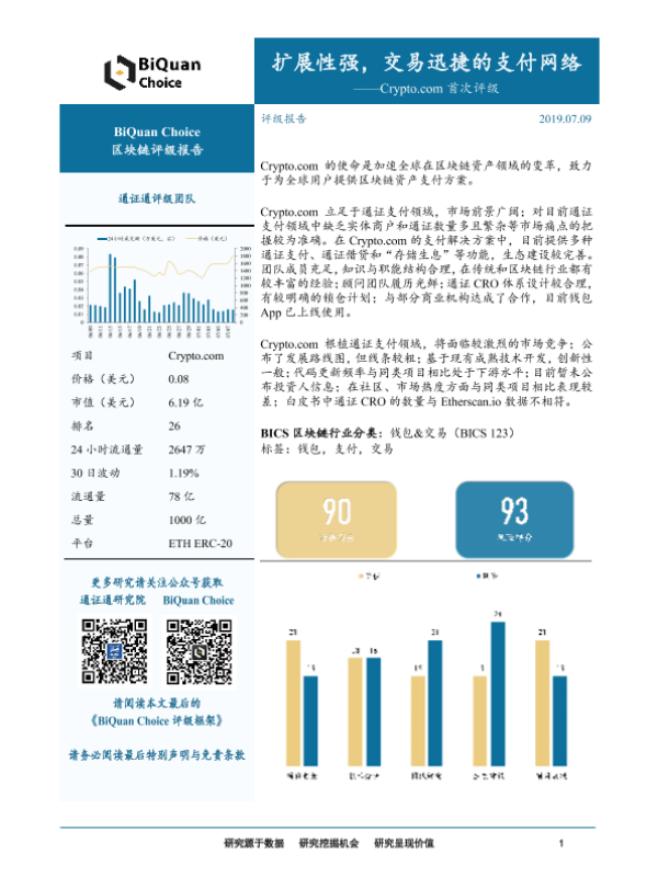 【通证通研究院】【20190709】扩展性强,交易迅捷的支付网络——Crypto.com首次评级-3页
