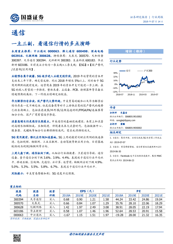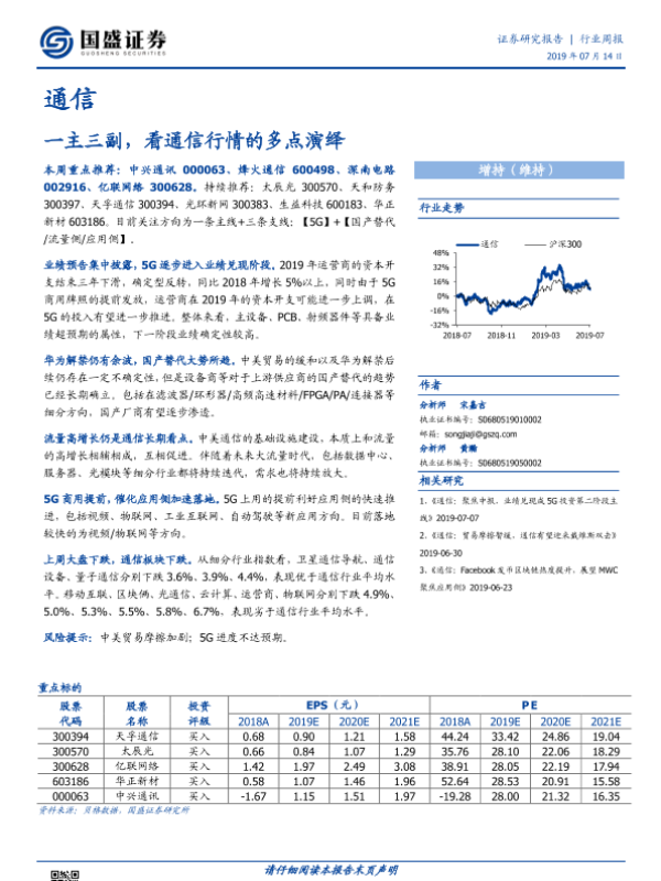 【国盛证券】【20190714】20190714-国盛证券-通信行业周报:一主三副,看通信行情的多点演绎-7页