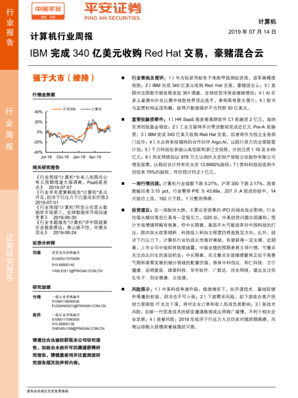 【平安证券】【20190714】计算机行业周报:IBM完成340亿美元收购RedHat交易,豪赌混合云-5页