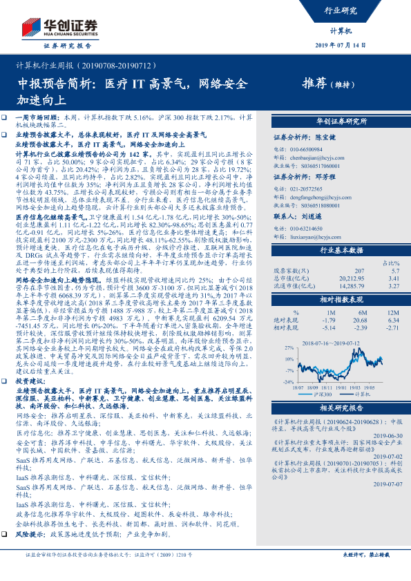 【华创证券】【20190714】20190714-华创证券-计算机行业周报:中报预告简析:医疗IT高景气,网络安全加速向上-22页