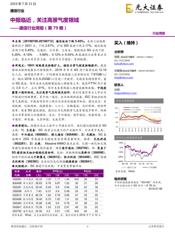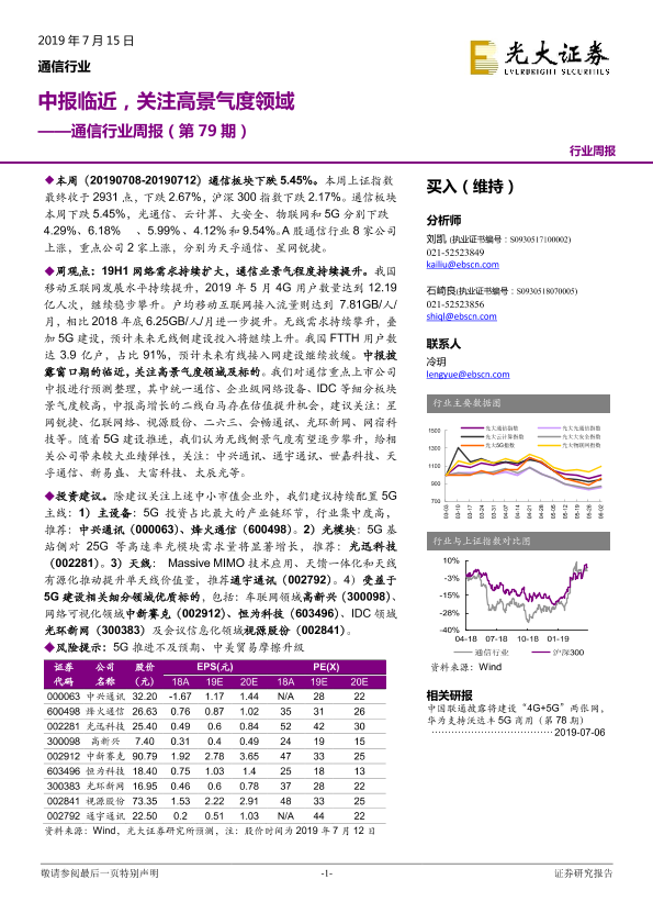 【光大证券】【20190715】通信行业周报(第79期)中报临近,关注高景气度领域-14页