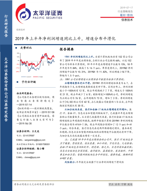 【太平洋证券】【20190717】2019年上半年净利润增速同比上升,增速分布平滑化-3页