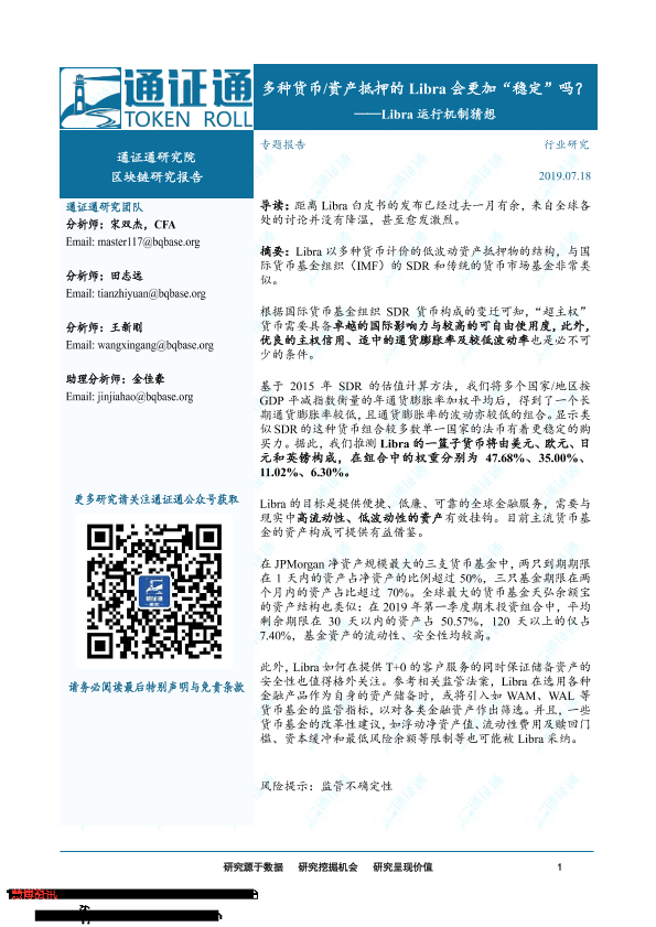 【通证通研究院】【20190718】区块链研究报告:Libra运行机制猜想——多种货币资产抵押的Libra会更加“稳定”吗?-17页