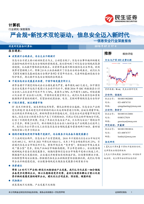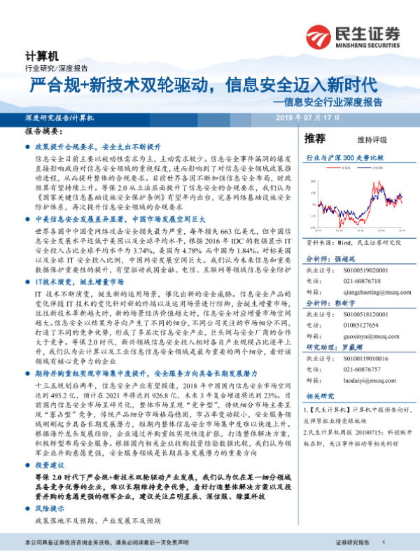 【民生证券】【20190717】20190717-民生证券-信息安全行业深度报告:严合规+新技术双轮驱动,信息安全迈入新时代-47页