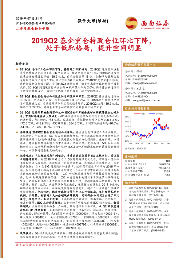 【西南证券】【20190721】2019Q2基金重仓持股仓位环比下降,处于低配格局,提升空间明显-10页