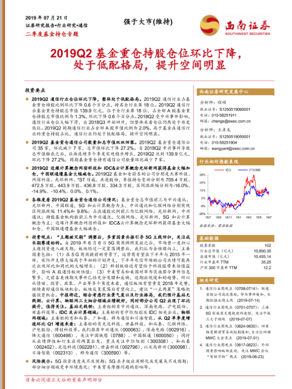 5G 二季度报告 云计算 基金持仓 通信行业