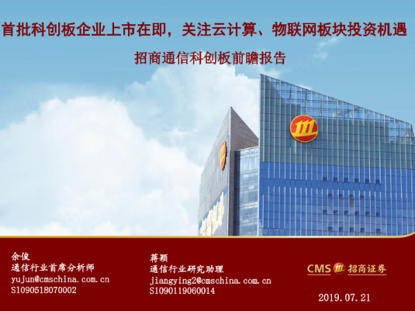 【海通证券】【20190721】20190721-招商证券-通信科创板前瞻报告:首批科创板企业上市在即,关注云计算、物联网板块投资机遇-27页