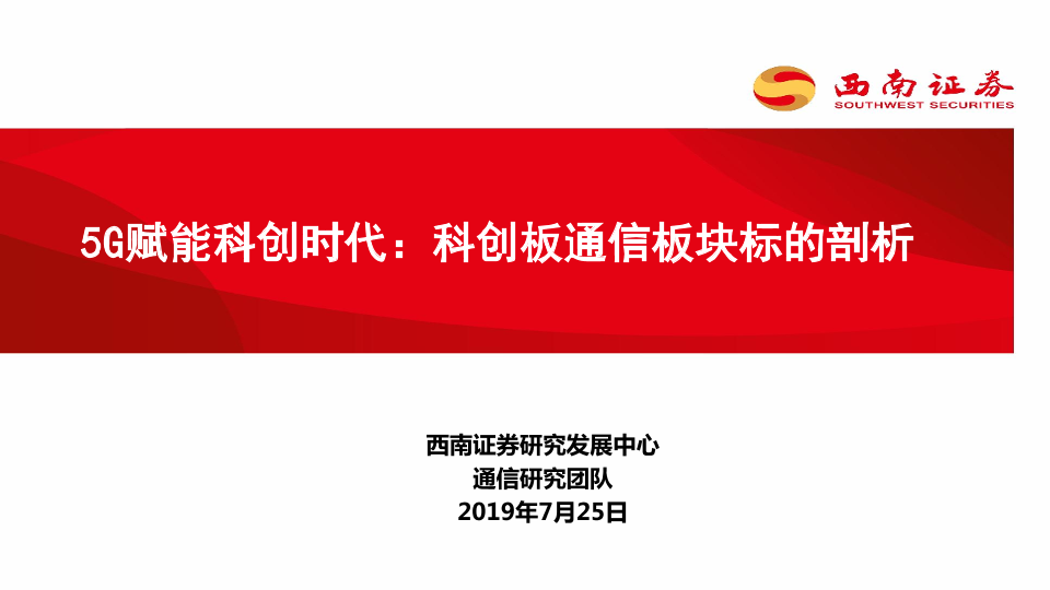 【西南证券】【20190725】5G赋能科创时代:科创板通信板块标的剖析-27页
