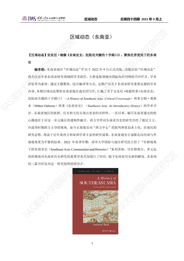 区域历史 学术书评 政治与社会 文化多样性 东南亚研究