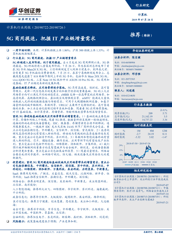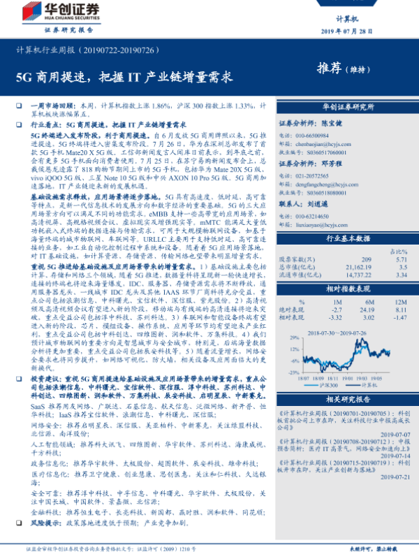 【华创证券】【20190728】20190728-华创证券-计算机行业周报:5G商用提速,把握IT产业链增量需求-22页