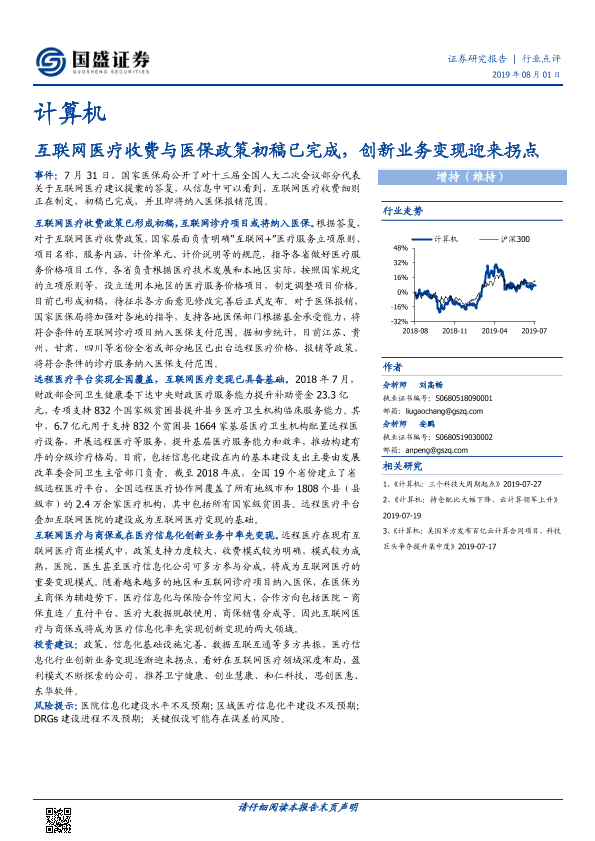 【国盛证券】【20190801】计算机行业点评:互联网医疗收费与医保政策初稿已完成,创新业务变现迎来拐点-2页