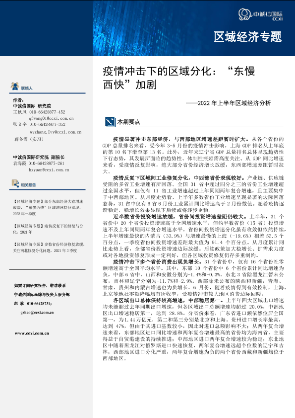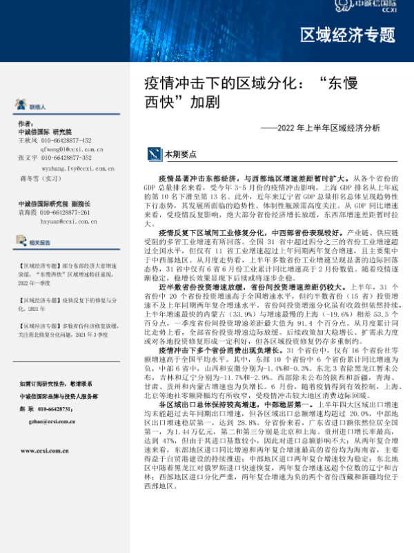 【中诚信国际】【20220101】疫情冲击下的区域分化:“东慢西快”加剧---2022年上半年区域经济分析-12页