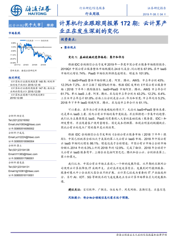 【海通证券】【20190804】计算机行业跟踪周报第172期:云计算产业正在发生深刻的变化-7页