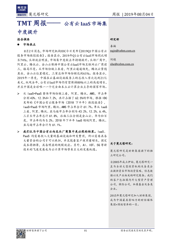 【莫尼塔研究】【20190804】TMT周报——公有云IaaS市场集中度提升-6页