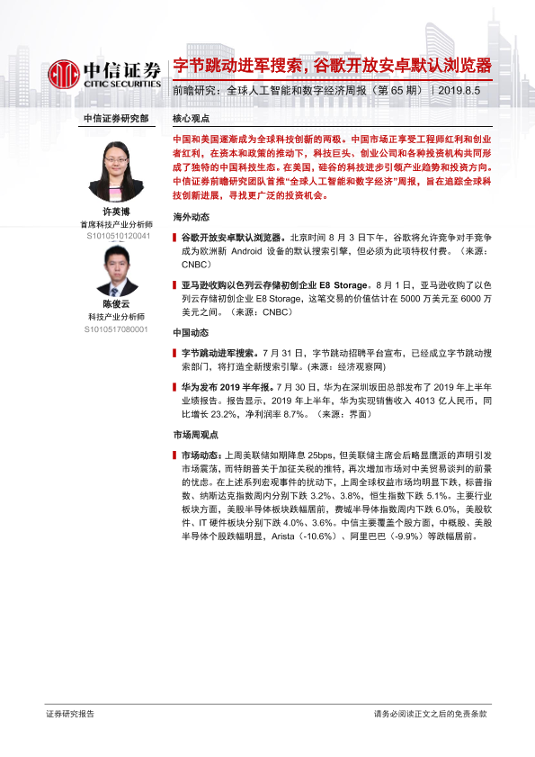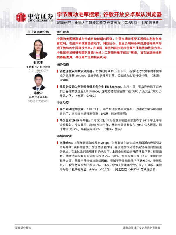 【中信证券】【20190805】全球人工智能和数字经济周报(第65期):字节跳动进军搜索,谷歌开放安卓默认浏览器-11页