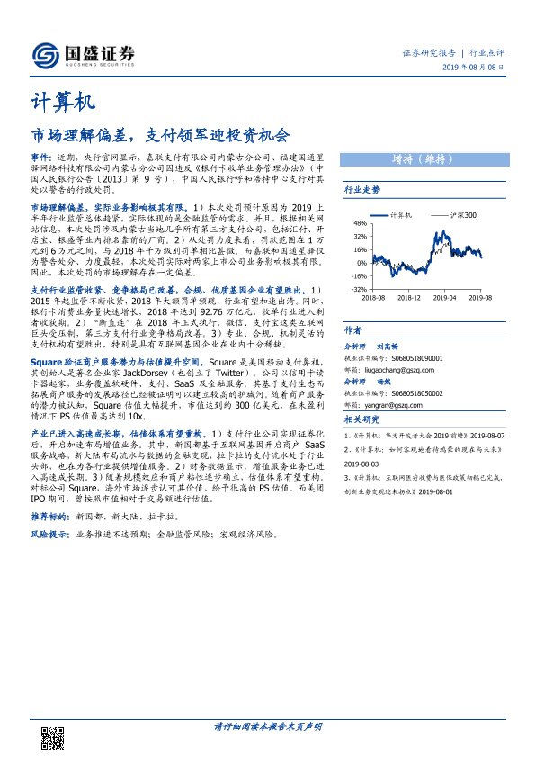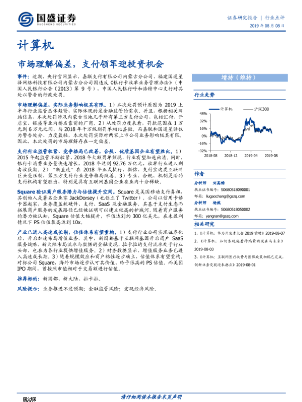 【国盛证券】【20190808】计算机行业点评:市场理解偏差,支付领军迎投资机会-2页