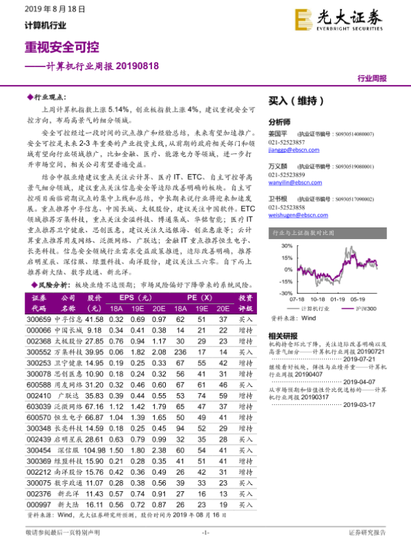 【光大证券】【20190818】计算机行业周报:重视安全可控-9页