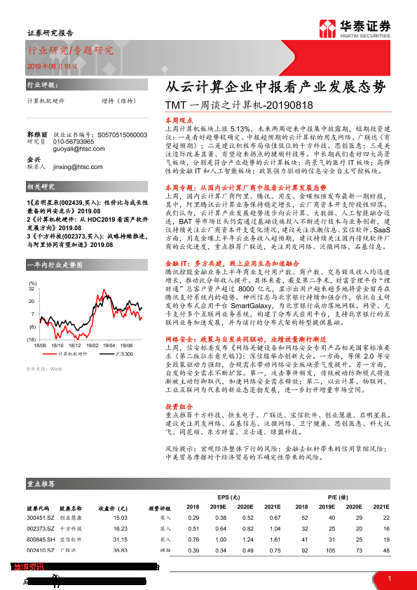 【华泰证券】【20190818】TMT一周谈之计算机:从云计算企业中报看产业发展态势-15页