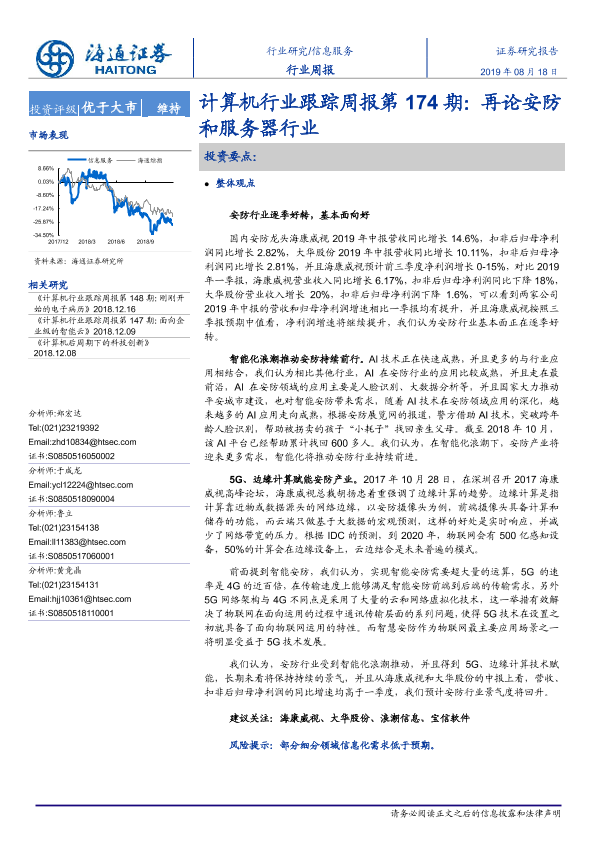 【海通证券】【20190818】计算机行业跟踪周报第174期:再论安防和服务器行业-7页