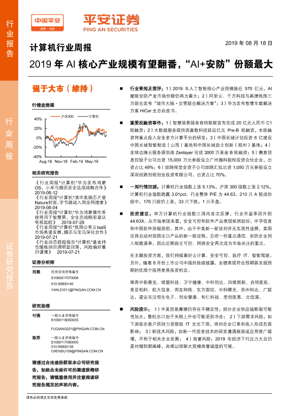 【平安证券】【20190818】2019年AI核心产业规模有望翻番,“AI+安防”份额最大-5页