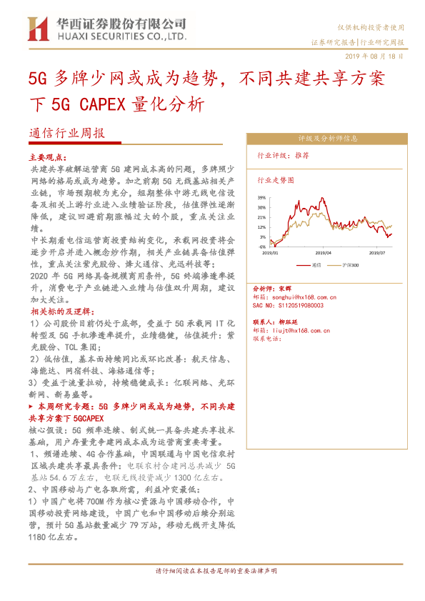 【华西证券】【20190818】通信行业周报:5G多牌少网或成为趋势,不同共建共享方案下5G CAPEX量化分析-17页