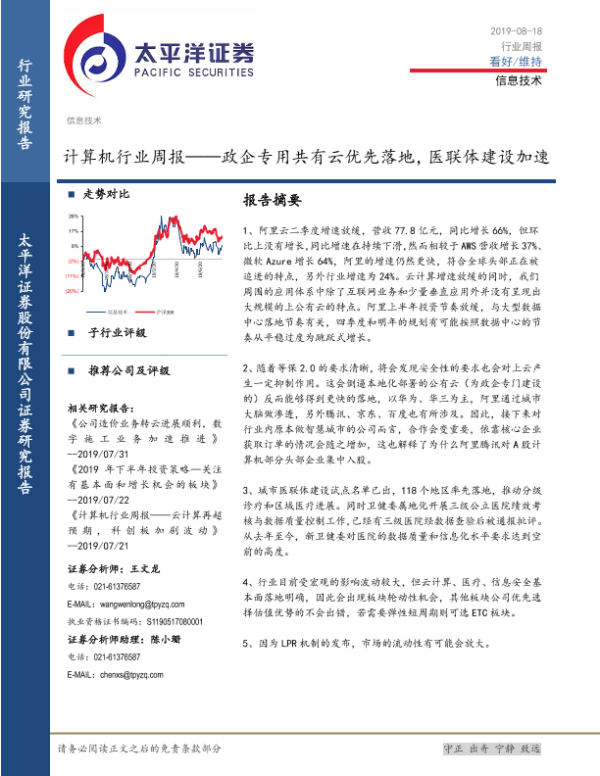【太平洋证券】【20190818】计算机行业周报——政企专用共有云优先落地,医联体建设加速-3页
