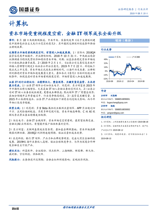 【国盛证券】【20190819】计算机行业点评:资本市场受重视程度空前,金融IT领军成长全面升级-2页