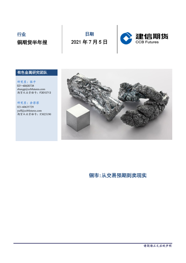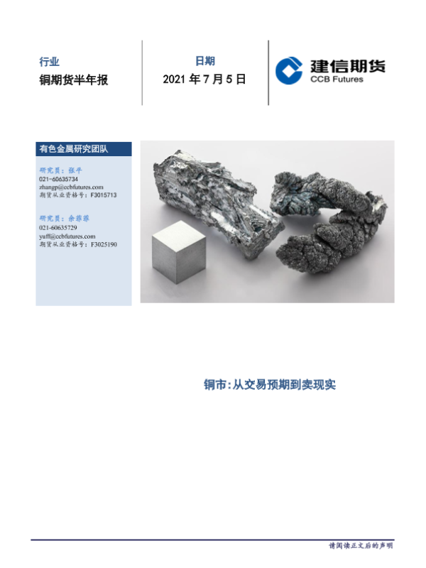 【建信期货】【20210705】铜期货半年报:铜市,从交易预期到卖现实-20页