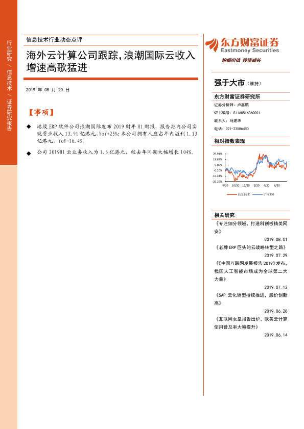 【东方财富证券】【20190820】信息技术行业动态点评:海外云计算公司跟踪,浪潮国际云收入增速高歌猛进-3页