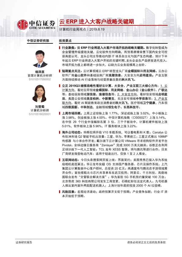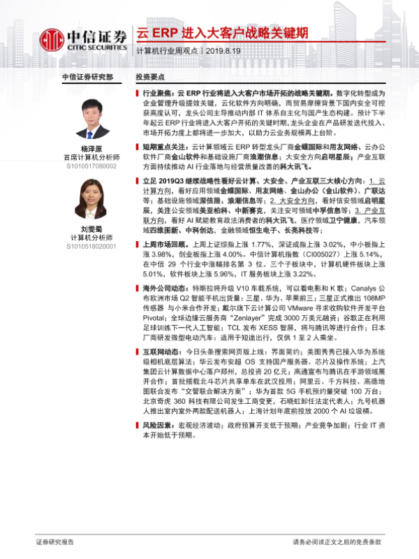 【中信证券】【20190819】计算机行业周观点:云ERP进入大客户战略关键期-11页