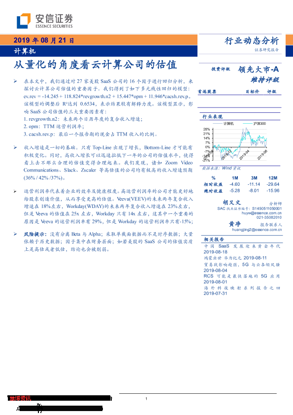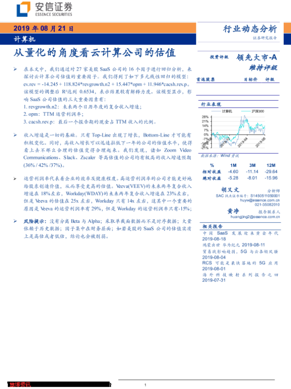 【安信证券】【20190821】从量化的角度看云计算公司的估值-9页