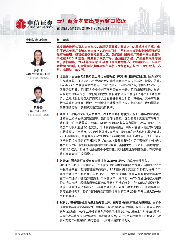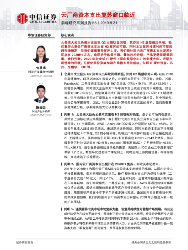 【中信证券】【20190821】云厂商资本支出复苏窗口临近-11页