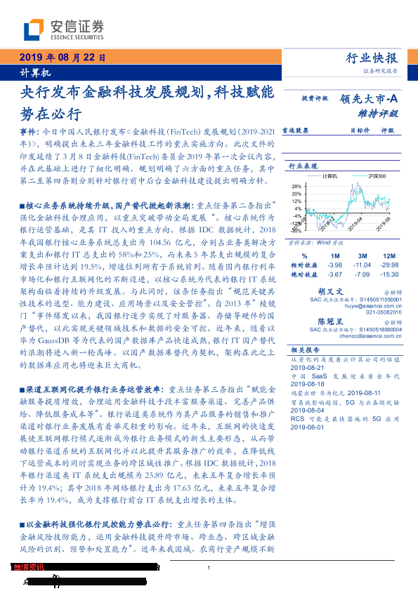 【安信证券】【20190822】央行发布金融科技发展规划,科技赋能势在必行-4页
